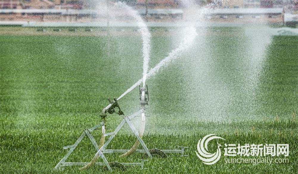 近日,夏县胡张乡王学种植家庭农场小麦基地,农民用大型卷盘自走式喷灌机普浇拔节水,保障小麦稳健生长。 特约摄影 姚中吉 摄
