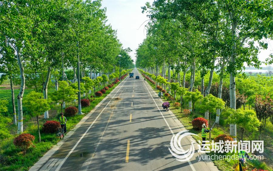 4月19日,工人在夏县埝裴线道路绿化带内对花草树木进行管护作业。近年来,夏县大力推进“四好农村路”建设,持续加强道路沿线管护,有效提升了交通沿线的生态环境质量。