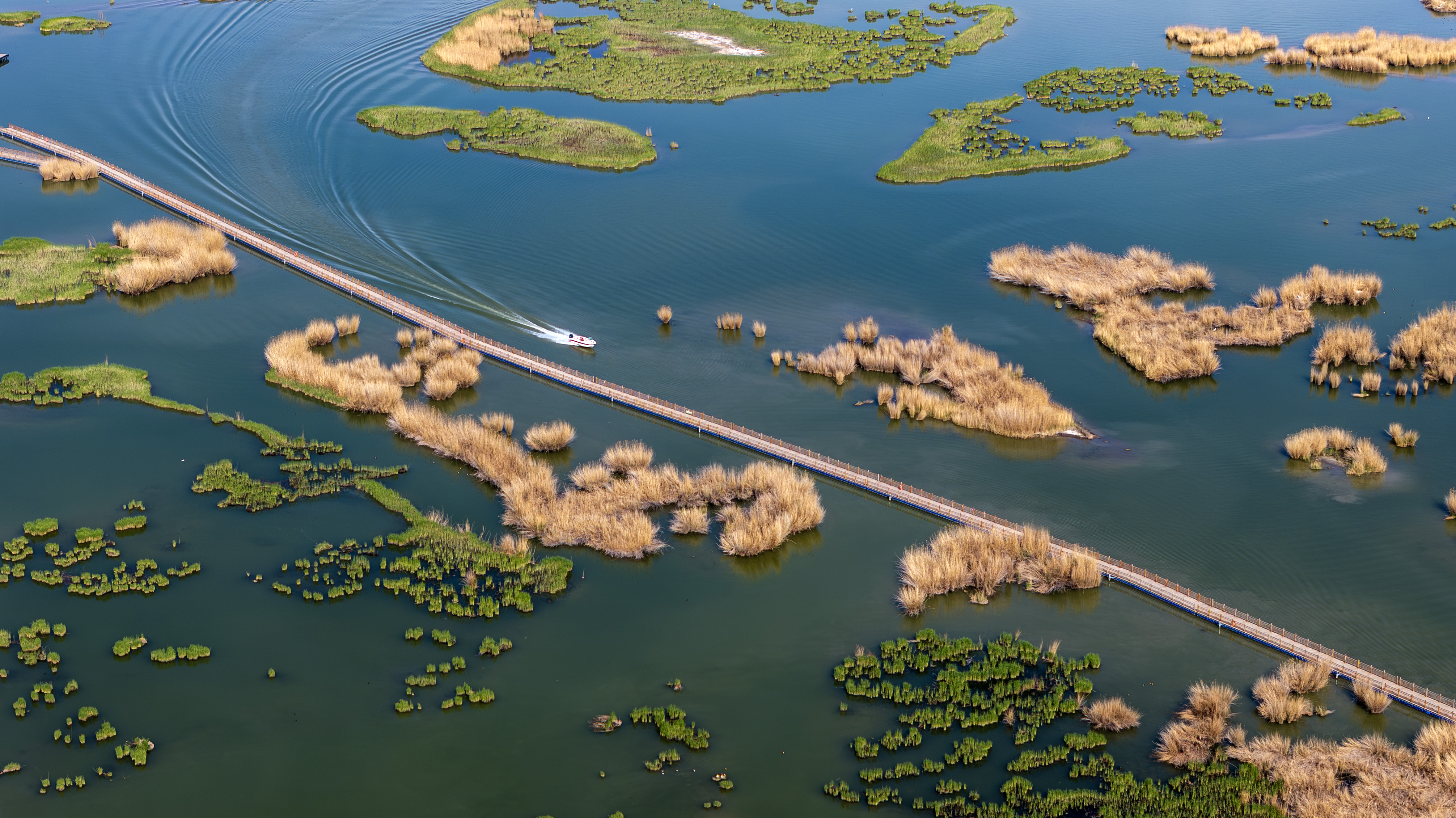 这是4月18日拍摄的沙湖生态景观(无人机照片)。