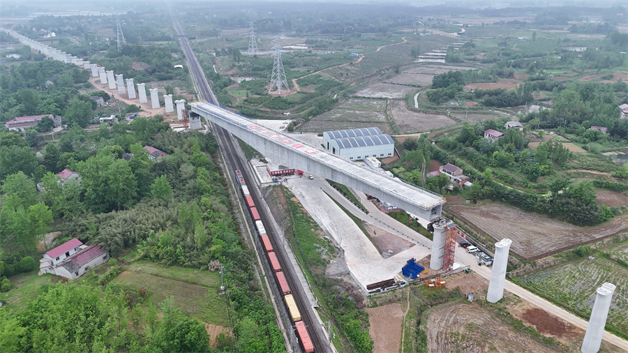 合肥至武汉高速铁路是我国“八纵八横”高铁网沿江通道的重要组成部分,设计时速350公里。线路建成后,将在合肥至武汉间形成新的高铁大通道,进一步优化长江经济带铁路网布局。 新华社发(彭 特 摄)