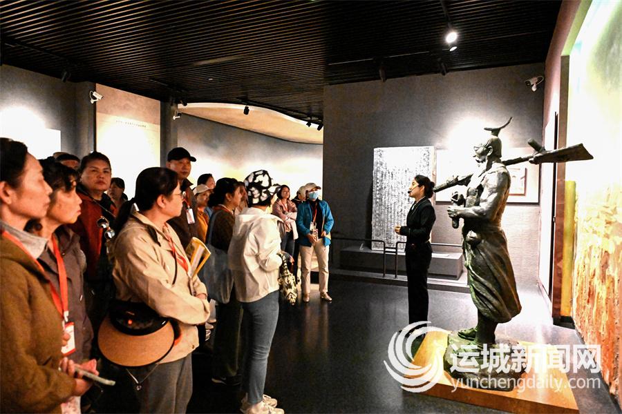 4月23日,永济博物馆内,来自陕西西安的游客在聆听蒲坂历史文化讲解。
