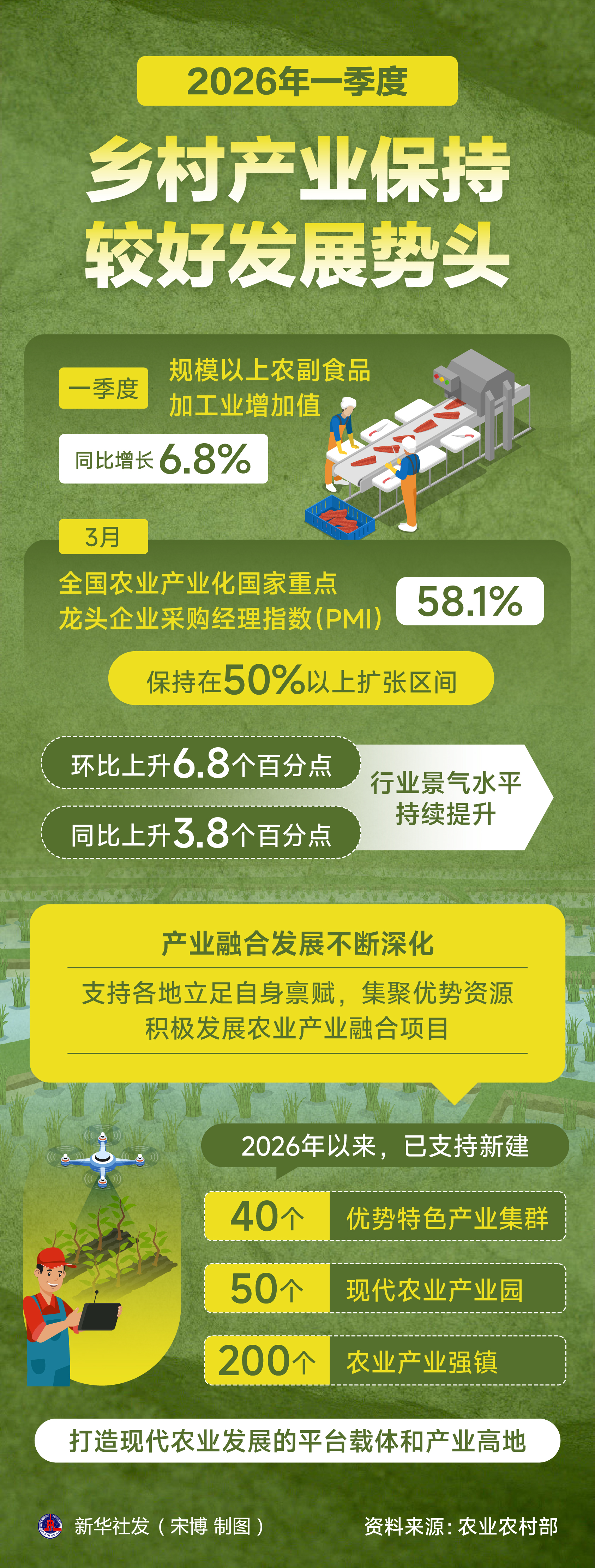 做好“三农”工作至关重要。2026年一季度我国农业生产情况如何?常态化帮扶成效怎样?乡村建设如何更好满足农民群众期盼?23日,国新办举行的发布会上,农业农村部有关负责人详解今年一季度农业农村经济运行情况。