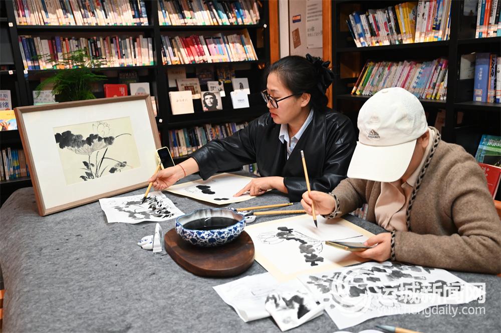 活动现场,书房特邀专业老师李欢现场授课。她将晦涩的专业术语拆解为通俗易懂的内容,学员们凝神倾听、频频点头。之后,大家以李欢老师参照明代画家陈淳作品绘制的《荷花图》为参考,展开独立创作。市民王女士说:“每节课都有新内容,让我进步明显。现在欣赏作品时,也更能读懂其中的韵味了。”