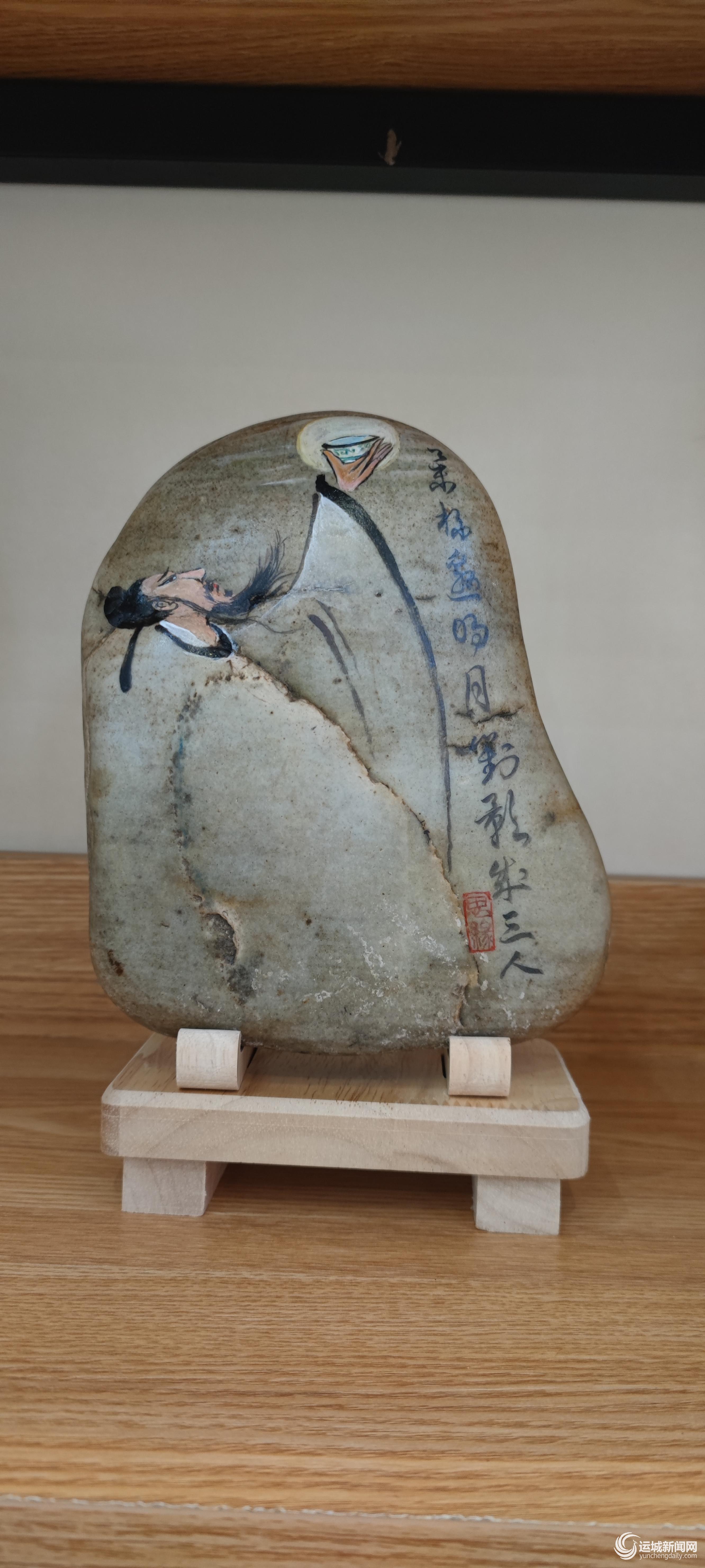 运城工艺美术馆展出的“李白”黄河石石画工艺品 图片 记者 刘亚 摄
