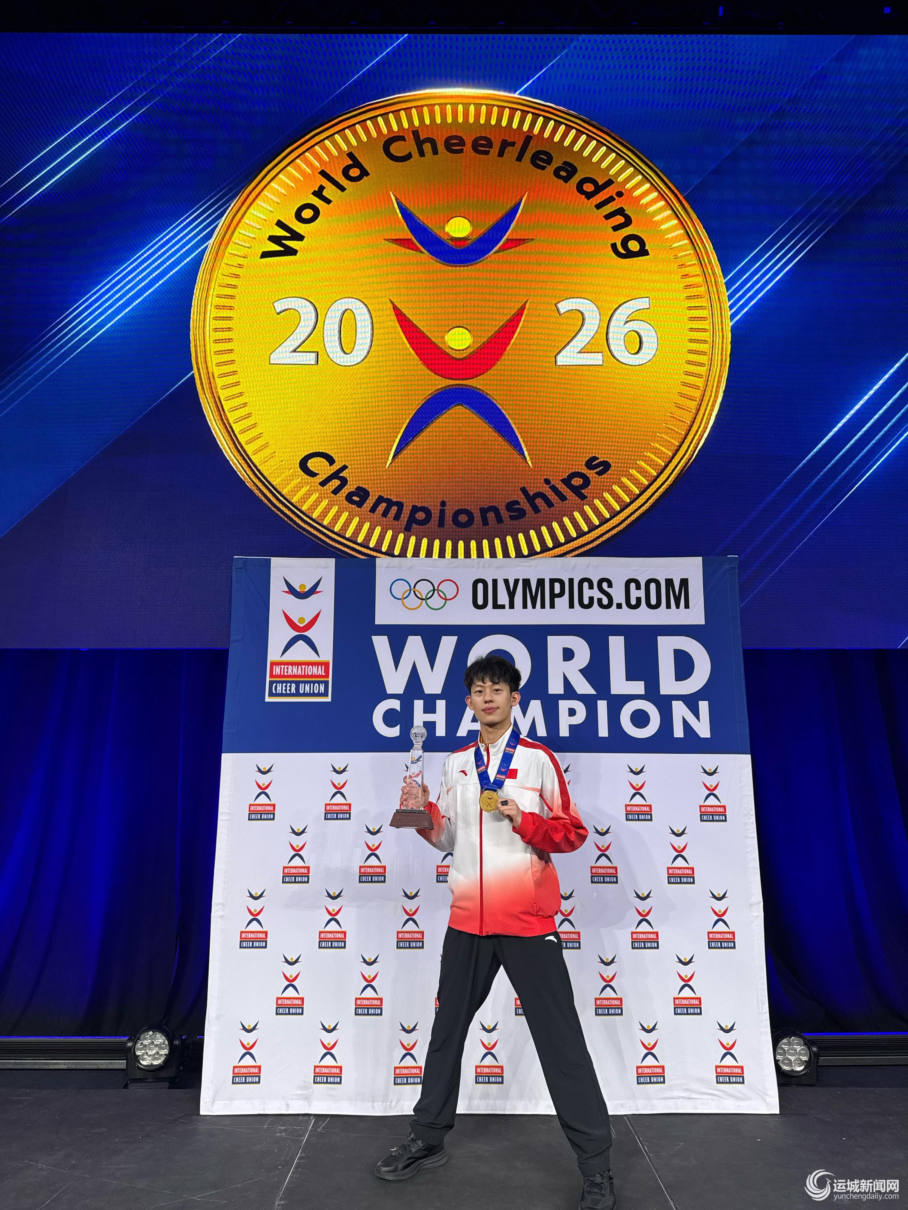 世界啦啦操锦标赛是由国际啦啦队联盟(ICU)主办的全球性啦啦操赛事,该组织是国际奥委会批准的国际单项协会。来自六大洲的5000名运动员代表参加了于4月22日至24日举办的2026年世界啦啦操锦标赛。赛场上,王亚洲和廖春球凭借扎实的基本功、稳定的心态强势突围,站上世界赛事最高领奖台,实现了历史性突破,为祖国争得了荣誉。