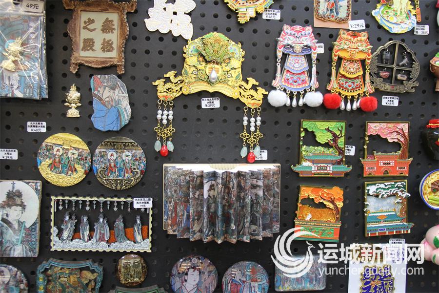 盬街好运集合站主理人赵娜娜介绍,除各大景区推出的经典文创以外,还有来自河东本土的非遗文创,如剪纸、澄泥砚、刺绣、琉璃、掐丝珐琅等,也都将关公故事、河东山水、民俗场景等文化内涵融入其中,装裱成小幅装饰画,或冰箱贴、摆件等,每一件都独一无二,承载着河东民间工匠的匠心。