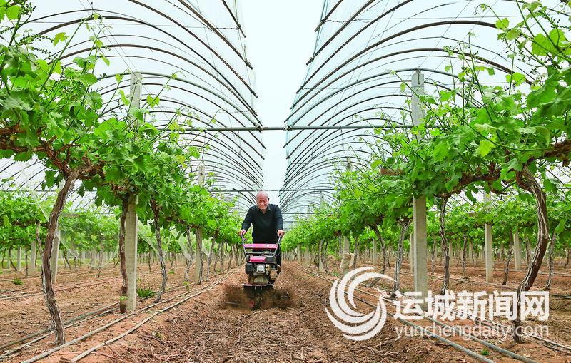 4月28日,稷山县清河镇阳城村葡萄大棚里一派忙碌,农户在进行田间作业。