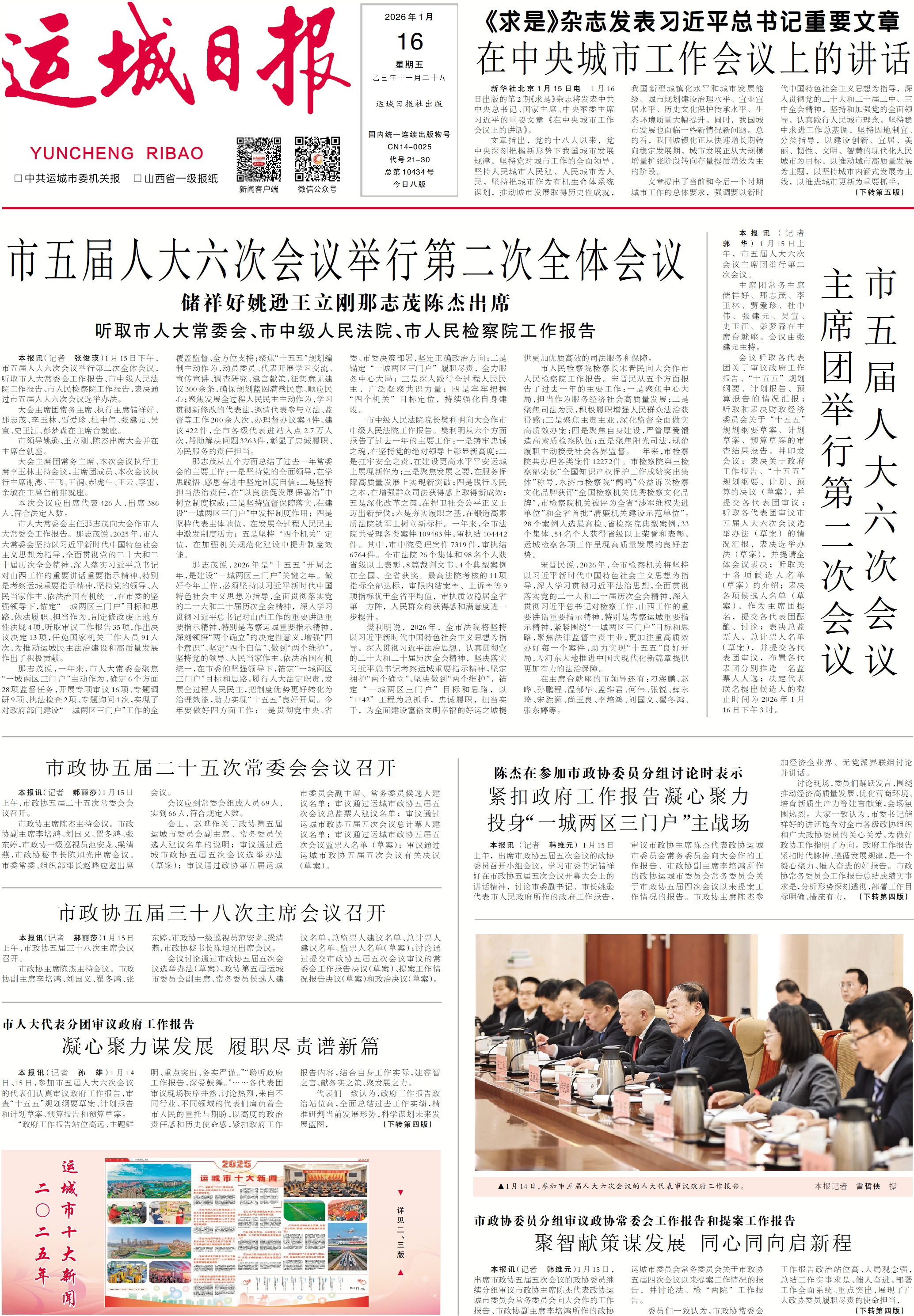 凝心聚力共绘发展同心圆,奋楫扬帆一起携手向未来。经过全体政协委员和与会同志的共同努力,中国人民政治协商会议第五届运城市委员会第五次会议圆满完成各项议程,于1月16日闭幕 ...