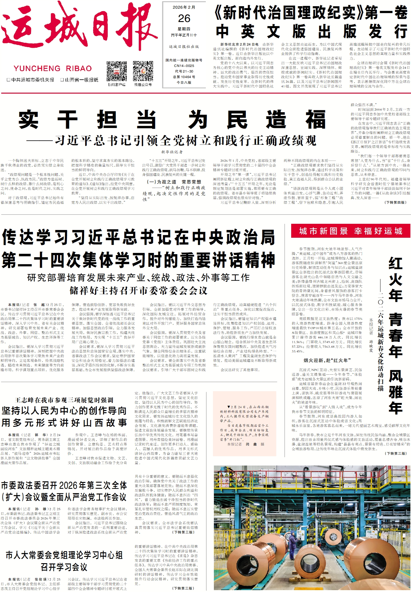 2026年运城市全民健身大拜年主题活动启幕 2月23日是春节假期最后一天,运城盐湖国际机场迎来客流返程高峰,出港旅客达6000人次,创春节假期单 ...