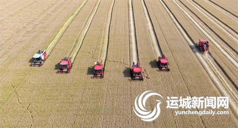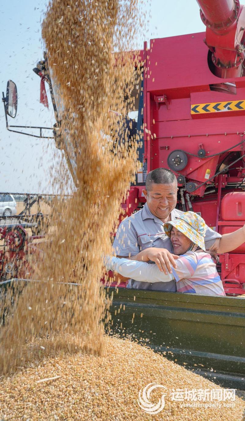 “三夏”时节,河东大地麦浪滚滚。5月28日,在盐湖区解州镇曲村金黄的麦田里,种粮大户董会龙和妻子范月亲迎来一年中忙碌的日子,合作社一台台收割机在麦田里来回穿梭,有条不紊收获小麦,田间一派繁忙景象。