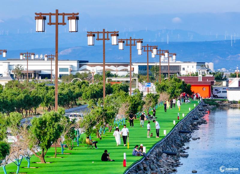 运城盐湖景区通过不断完善基础设施,增设观景平台、休闲步道和便民服务点,大幅提升了游客的观光体验,游客在湖边骑行、露营,成为一道亮丽的风景线。