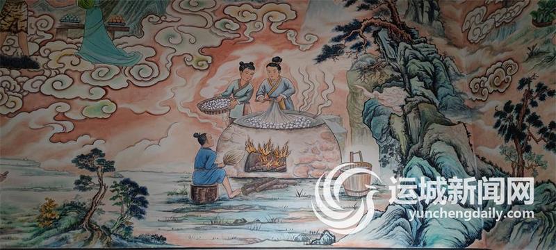 古人缫丝工艺中的煮茧工序(夏县西阴村寺庙壁画) 记者 刘亚 摄