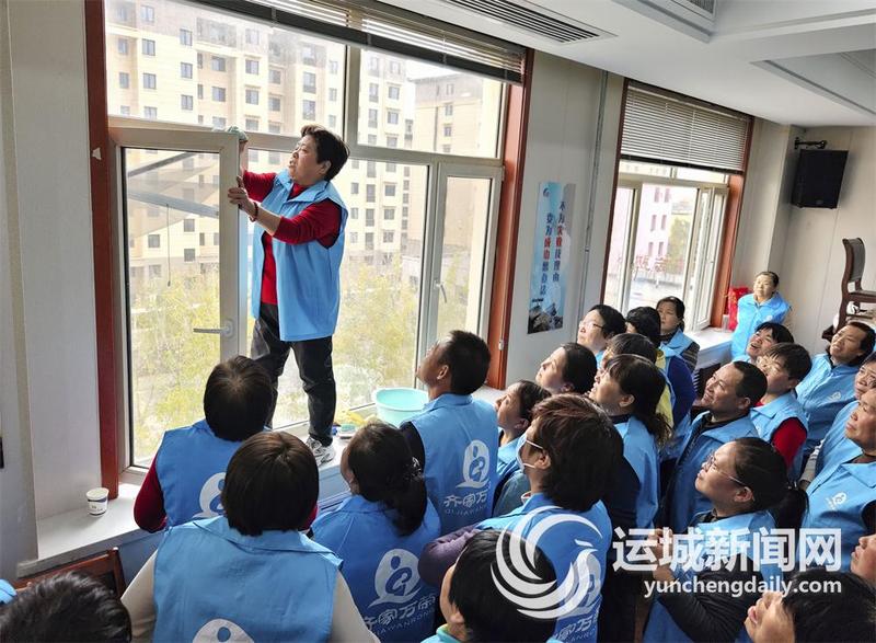 11月26日,在万荣县零工市场,参加重点社区帮扶就业公益培训的学员认真学练整理收纳保洁技能。
