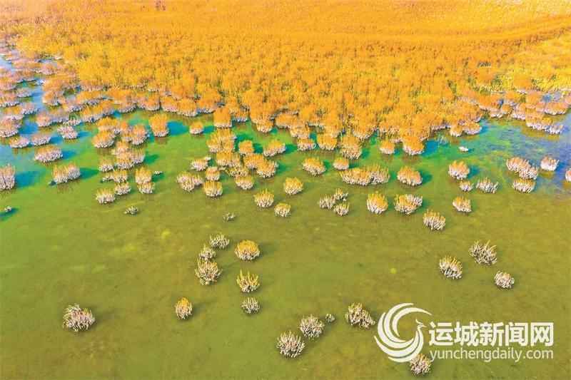 冬日的运城盐湖生态湿地,挂上白色盐霜的碱蓬草与湖光相映成趣,勾勒出一幅独具特色的生态画卷。(12月9日摄) 特约摄影 杨建峰