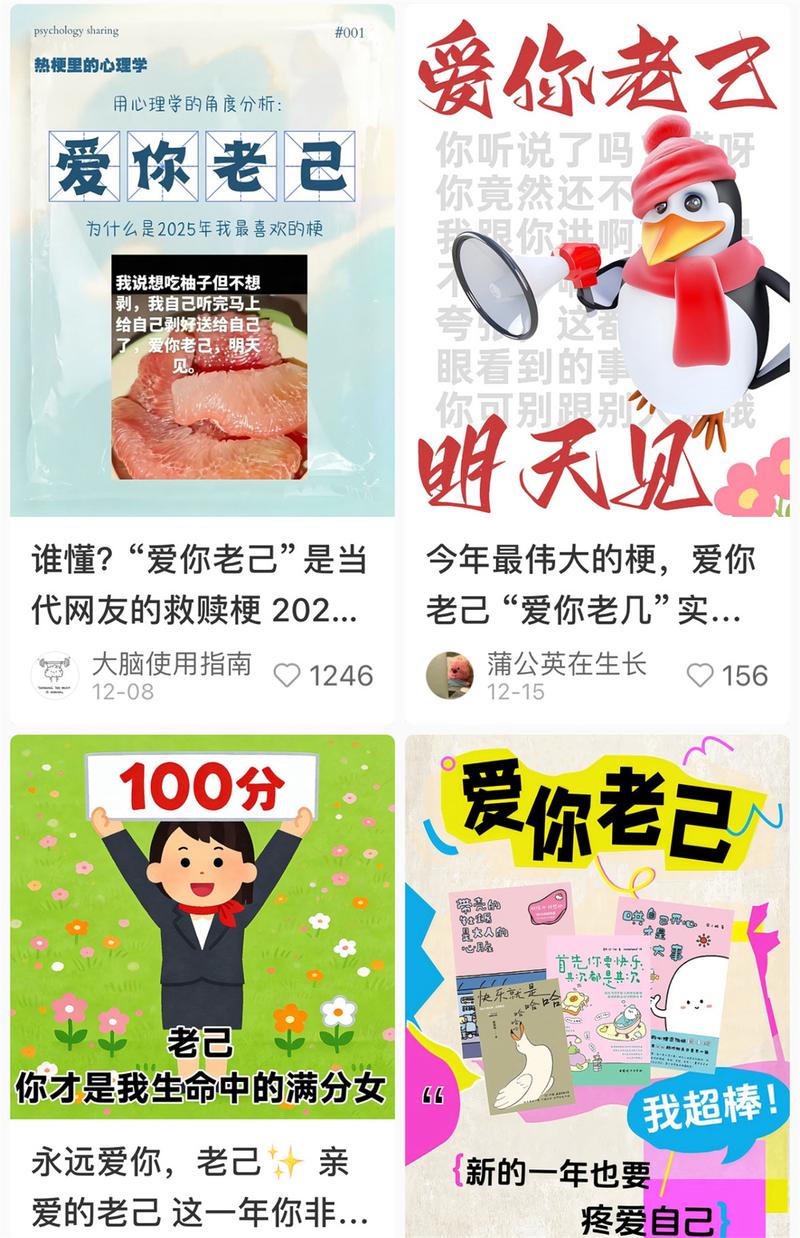 “中午想吃漂亮菜,老己立马带我去”“我想吃柚子但不想剥,老己听到马上就剥好了”“爱你老己,明天见”……在社交媒体上,这些看似幼稚的自我对话,藏着年轻人最温暖的期盼。在快节奏的现代生活中,出现什么问题,太多人习惯先苛责自己:偷个懒怕被说摆烂,花点钱担心不务实,连休息都要带着负罪感。而“爱你老己”的出现,打破了这种紧绷——它允许人们用第三人称看待自己,像对待亲密朋友一样包容:学不进去时,老己会说“那就奖励自己休息会”;考试失利时,能底气十足地对老己说“没关系,不管咋样我都可以养活你”。这种“一人分饰两角”的相处模式,让自我关怀从抽象口号变成了可操作的日常。
