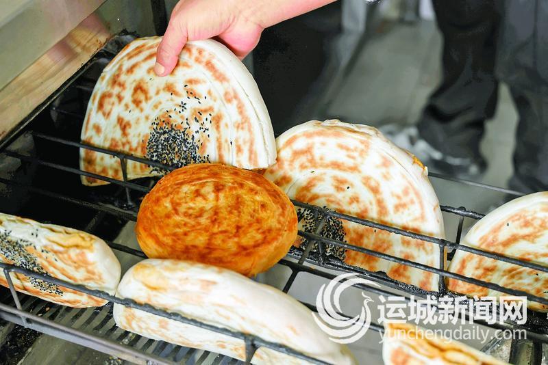 稷山县南吴口蛋娃饼子店新鲜出炉的饼子。 本报记者 金玉敏 摄