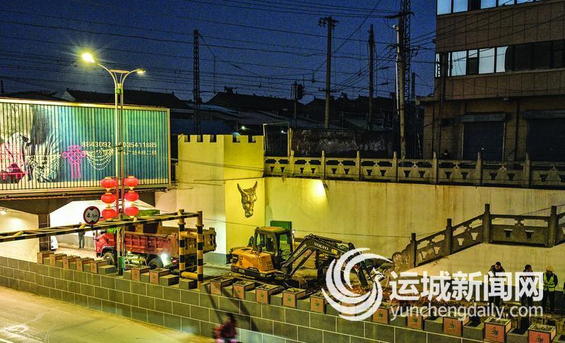 1月9日晚,寒意凛冽,永济市城区排水管网雨污分流改造工程铁路立交桥施工现场却热火朝天。