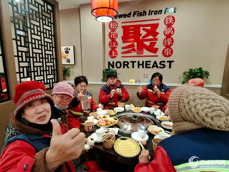 1月26日,盐湖区安邑街道外滩首府社区联合辖区爱心商铺松花江铁锅炖,举办了情暖腊八主题活动,邀请40余名环卫工人共享热气腾腾的腊八粥及丰盛餐食。