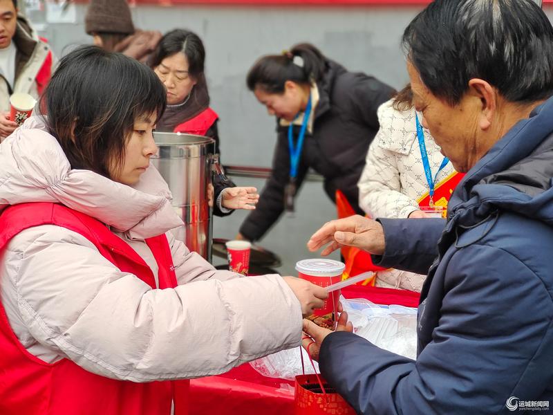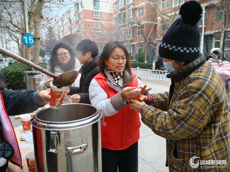 1月23日,闻喜县西城社区开展腊八节暖心送粥活动,为户外劳动者送去关怀,向社区老人、孩子传递温情。