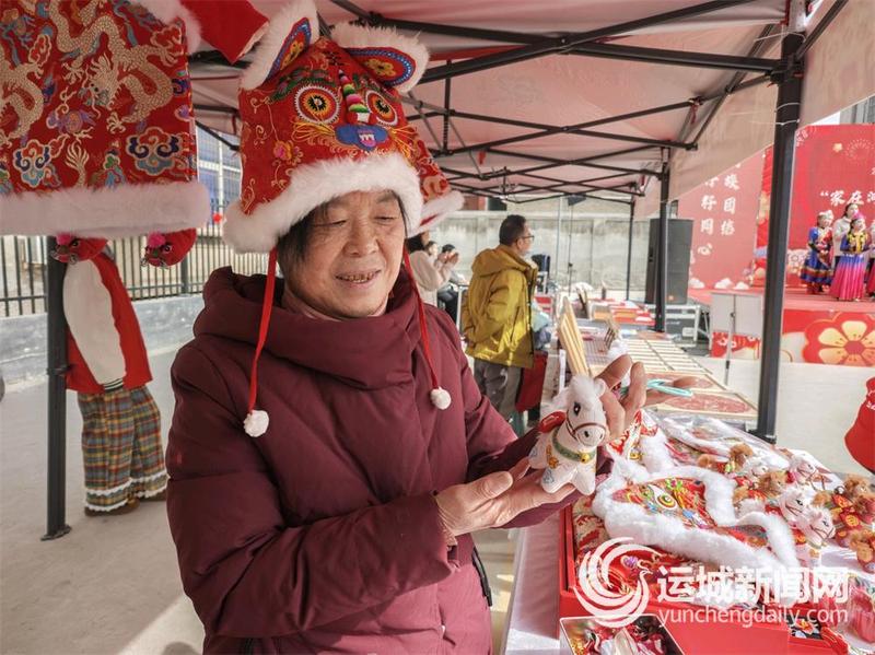年味渐浓的河东大地,随着人们对年的热切期盼变得愈发暖意融融。2月10日,以“家在河东 情融邻里”为主题的邻里节在盐湖区西城街道府西街社区广场热闹启幕。作为活动的重要组成部分,非遗摊位引来众多居民驻足围观。省级非遗盐湖区婴幼儿服饰制作技艺代表性传承人吉巧惠端坐案前,手指上下翻飞随针线舞动,一针一线绣制着虎头帽。一旁整齐摆放的喜庆精致的婴幼儿服饰、虎头帽及憨态可掬的小马挂件等,成为许多居民上前询问了解的心头好。