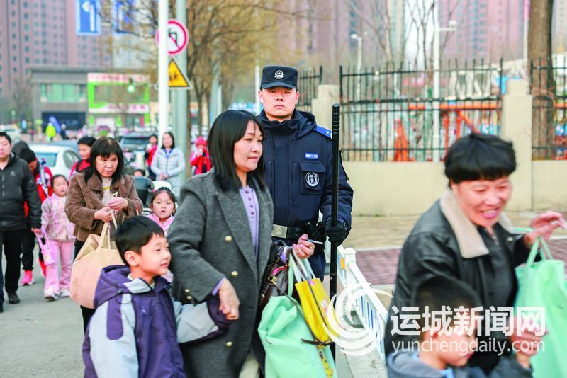 “快走几步,注意安全!”一句简单的提醒,他每天都要重复很多次。“有他在这儿守着,我们心里踏实多了。”一位接送孩子的家长笑着说。