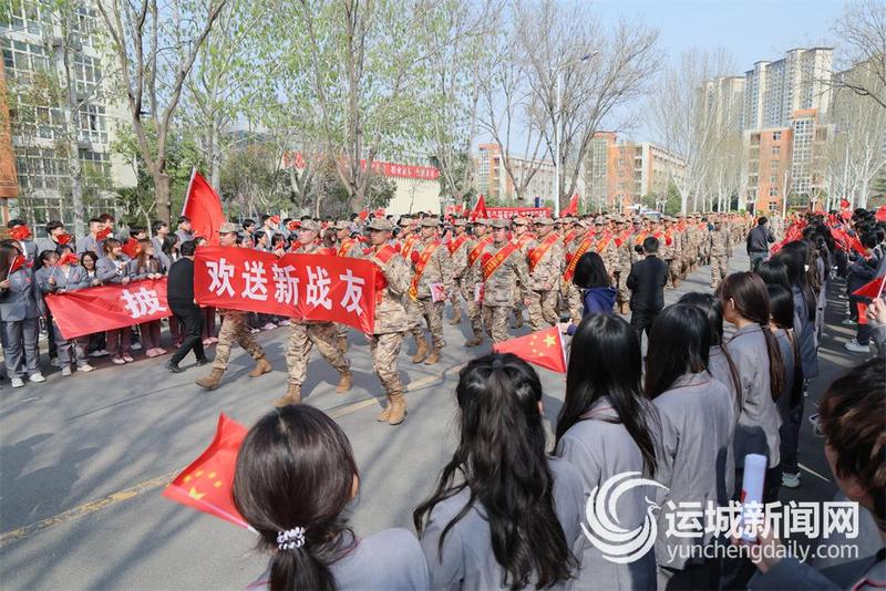 在征兵教育宣传工作中,我市根据年度宣传教育重点,有针对性地选取和布置宣传地点,主题鲜明、靶向聚焦。2024年,以社会流动人口为重点,在运城北站组织送兵仪式;2025年,以优秀现役军人和新兵家长为重点,在南风广场组织送兵仪式;今年,以高校武装阵地为重点,在运城职业技术大学组织送兵仪式。通过多元化差异化的送兵场景,弘扬爱军拥军好传统,汇聚崇军尚武正能量。