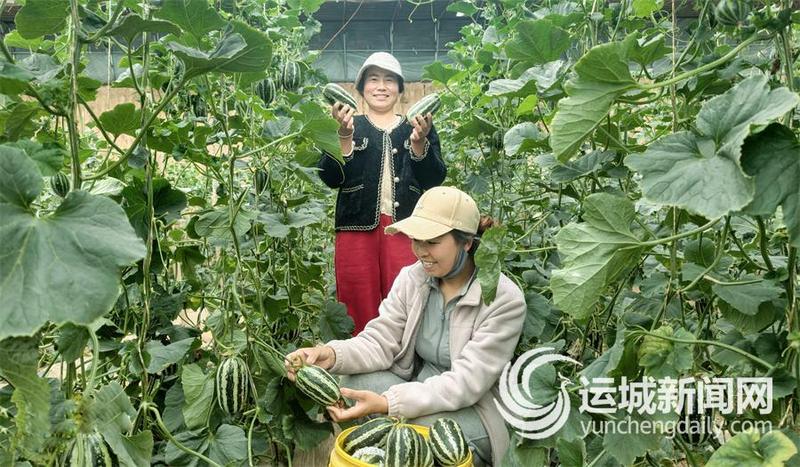 夏县王学家庭农场的万亩小麦基地,大型卷盘自走式喷灌机正挥舞着“银色长龙”,为夏粮丰产保驾护航,从“靠天吃饭”到“知天而作”,智能装备成了新农具。从夏县胡张乡的甜瓜大棚到稷山县的智慧菜园,现代农业已不是“面朝黄土背朝天”的辛劳,而是“智能水肥一体化”与“生物防控”的精准发力。无论是甜瓜、甜杏等水果带来的“甜蜜经济”,还是入选陕西西安“菜篮子”工程的绿色蔬菜,都在印证着一个道理:好收成离不开好技术,好日子离不开好产业。