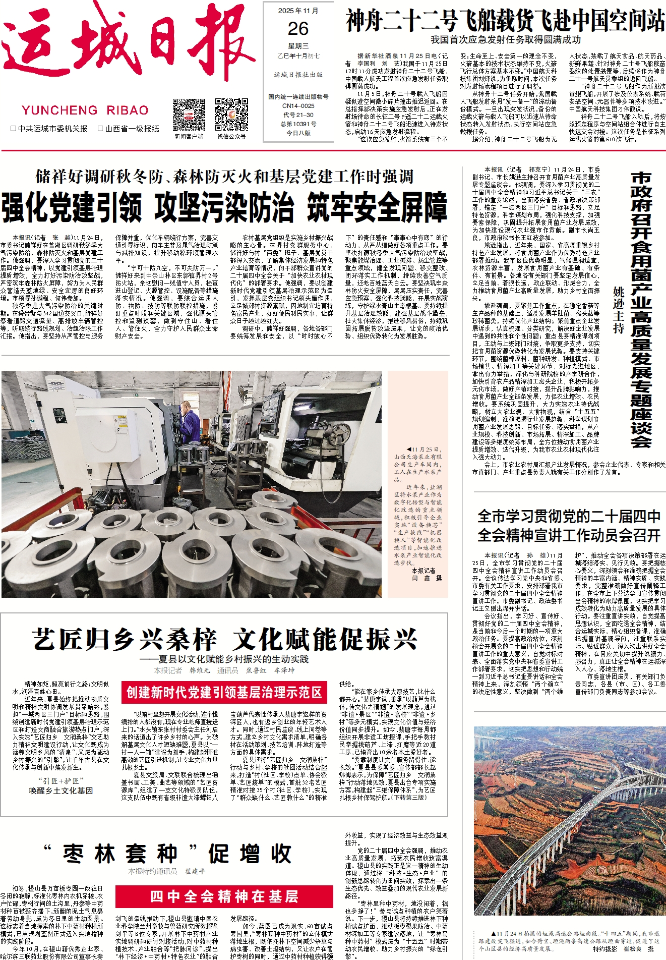 11月24日,市委书记储祥好在盐湖区调研秋冬季大气污染防治、森林防灭火和基层党建工作。他强调,要深入学习贯彻党的二十届四中全会精神,以党建引领基层治理提质增效,全力打好 ...