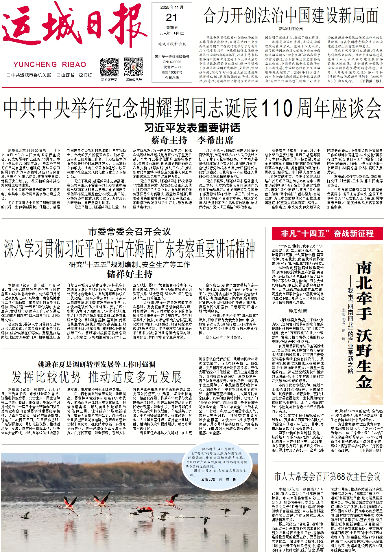 11月20日,市委书记储祥好主持召开五届市委第166次常委会会议,传达学习贯彻习近平总书记在听取海南自由贸易港建设工作汇报和在广东考察时的重要讲话精神,研究部署“十五五 ...