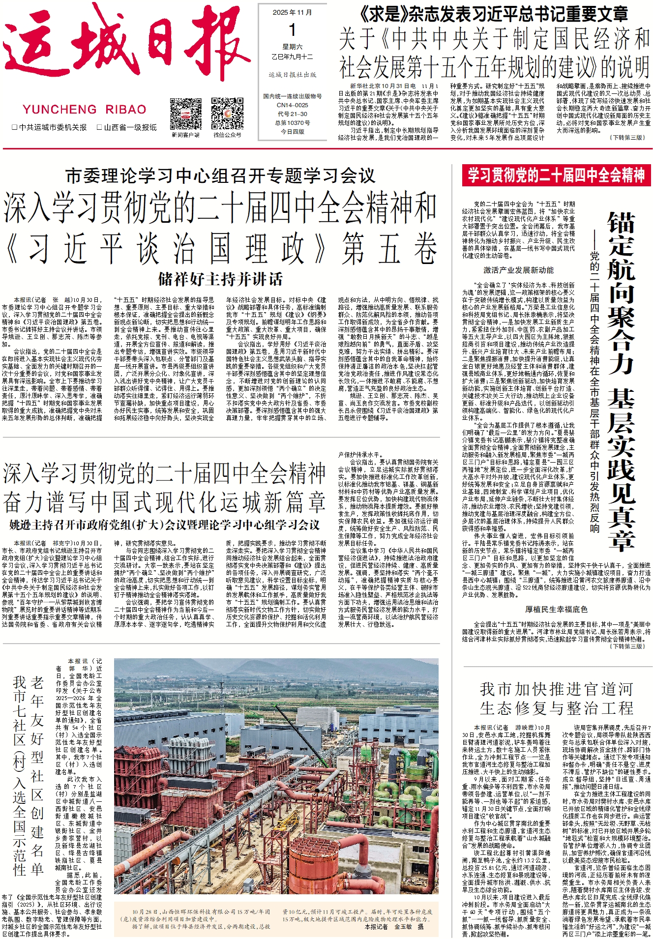 10月30日,市委理论学习中心组召开专题学习会议,深入学习贯彻党的二十届四中全会精神和《习近平谈治国理政》第五卷。市委书记储祥好主持会议并讲话。