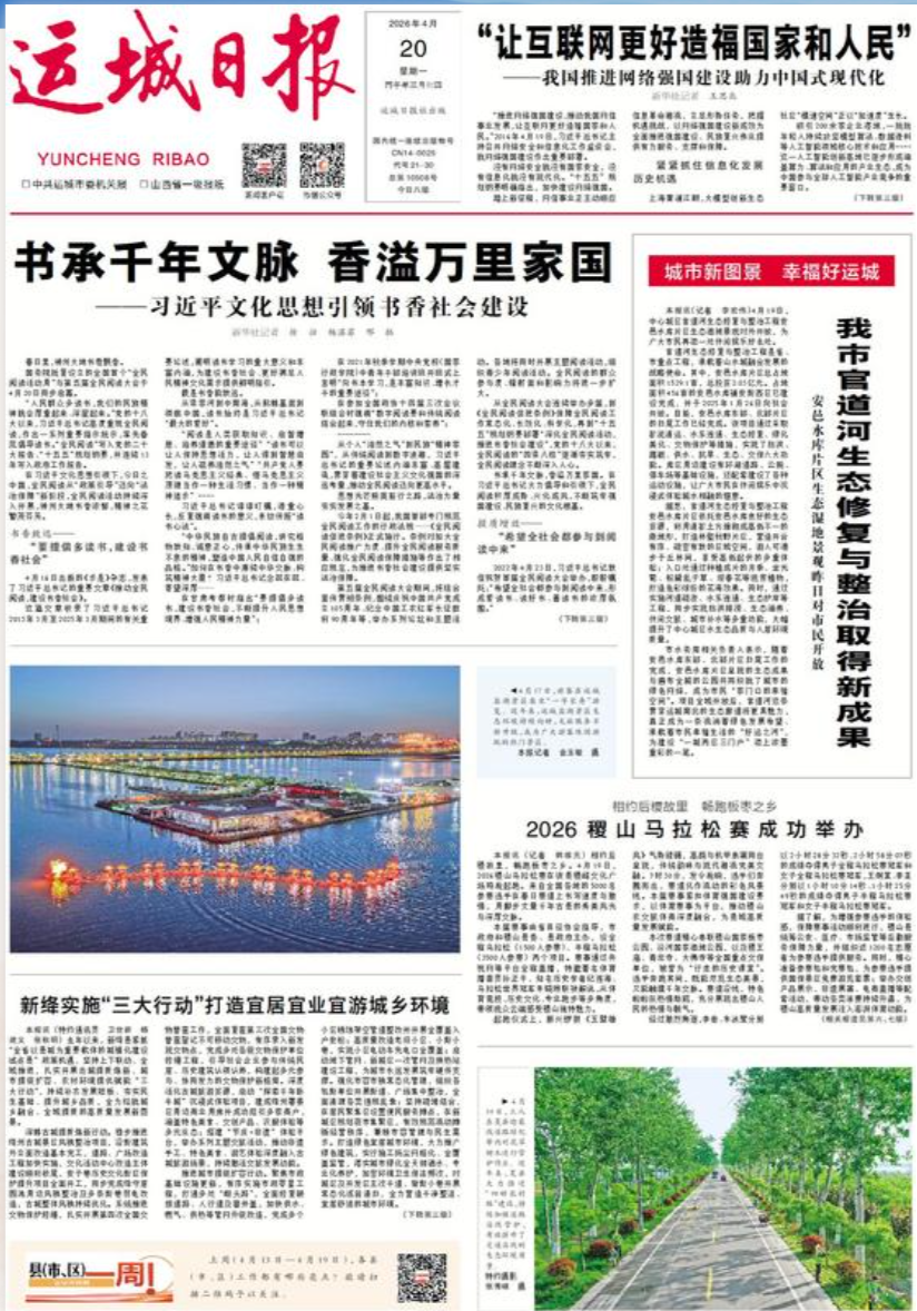 4月20日,“书香运城·阅润河东”运城市2026年全民阅读活动周启动。本次活动周从4月20日起为期一周,全市将统筹开展12项重点活动,覆盖城乡、贯通线上线下,推动形成全 ...